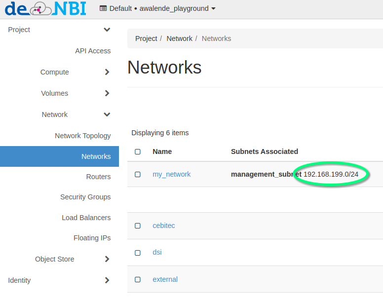 If you are struggling to find the definition of your private network, you can look it up on the OpenStack Dashboard: