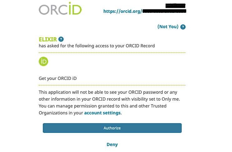 Log in to the account that you want to link to your LifeScience account. In the example shown this is done with ORCID. After you have signed up for the desired service, you will usually be asked to confirm/authorize the linking of the account.
