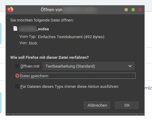 In case you upload a key yourself, please note that we currently only support the following formats: RSA and ECDSA (SHA2, NIST P256, P384 or P521). As mentioned above, regard the instructions to generate a supported key.