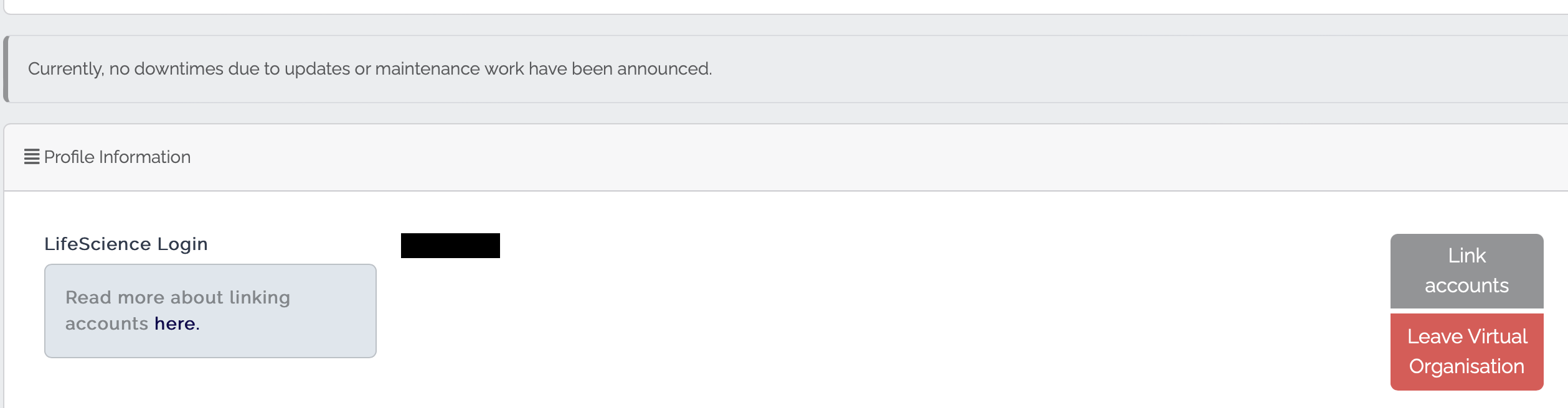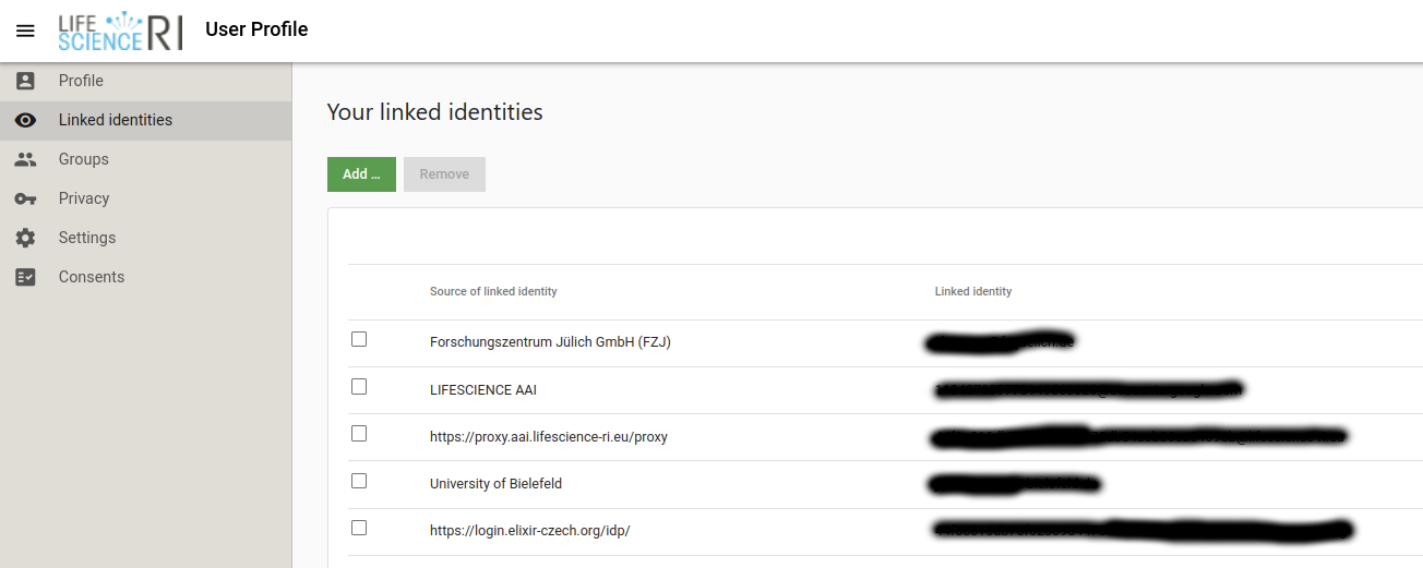 Click on Linkes identities in the menu to see and manage your accounts linked to your LifeScience account.