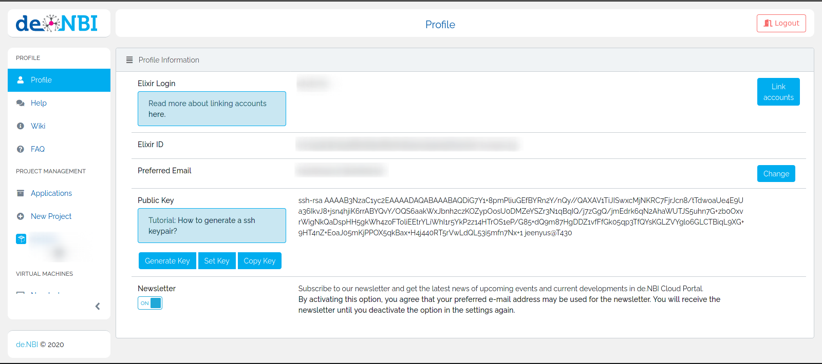 You can subscribe to the newsletter of the de.NBI Cloud. If you don't want to receive any more newsletters, you can as well deactivate the option.