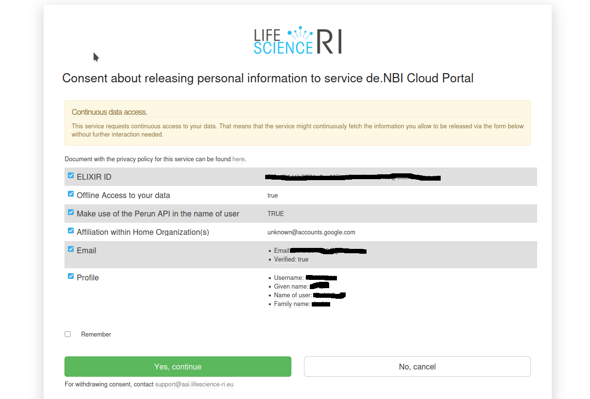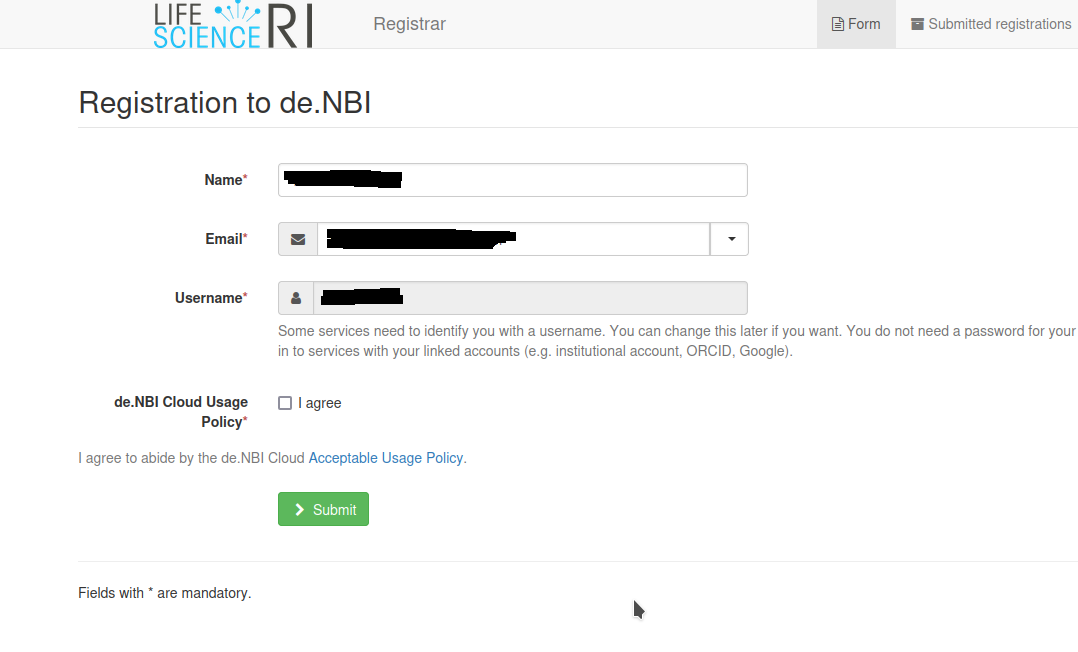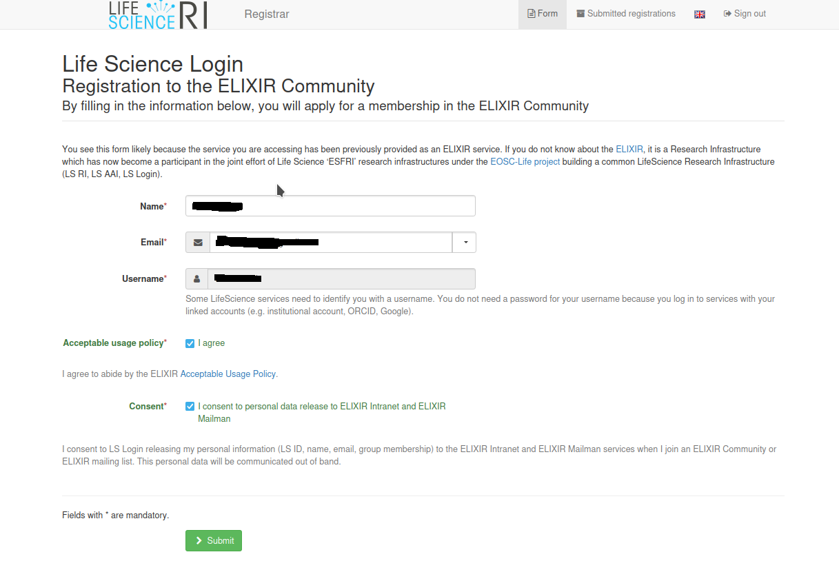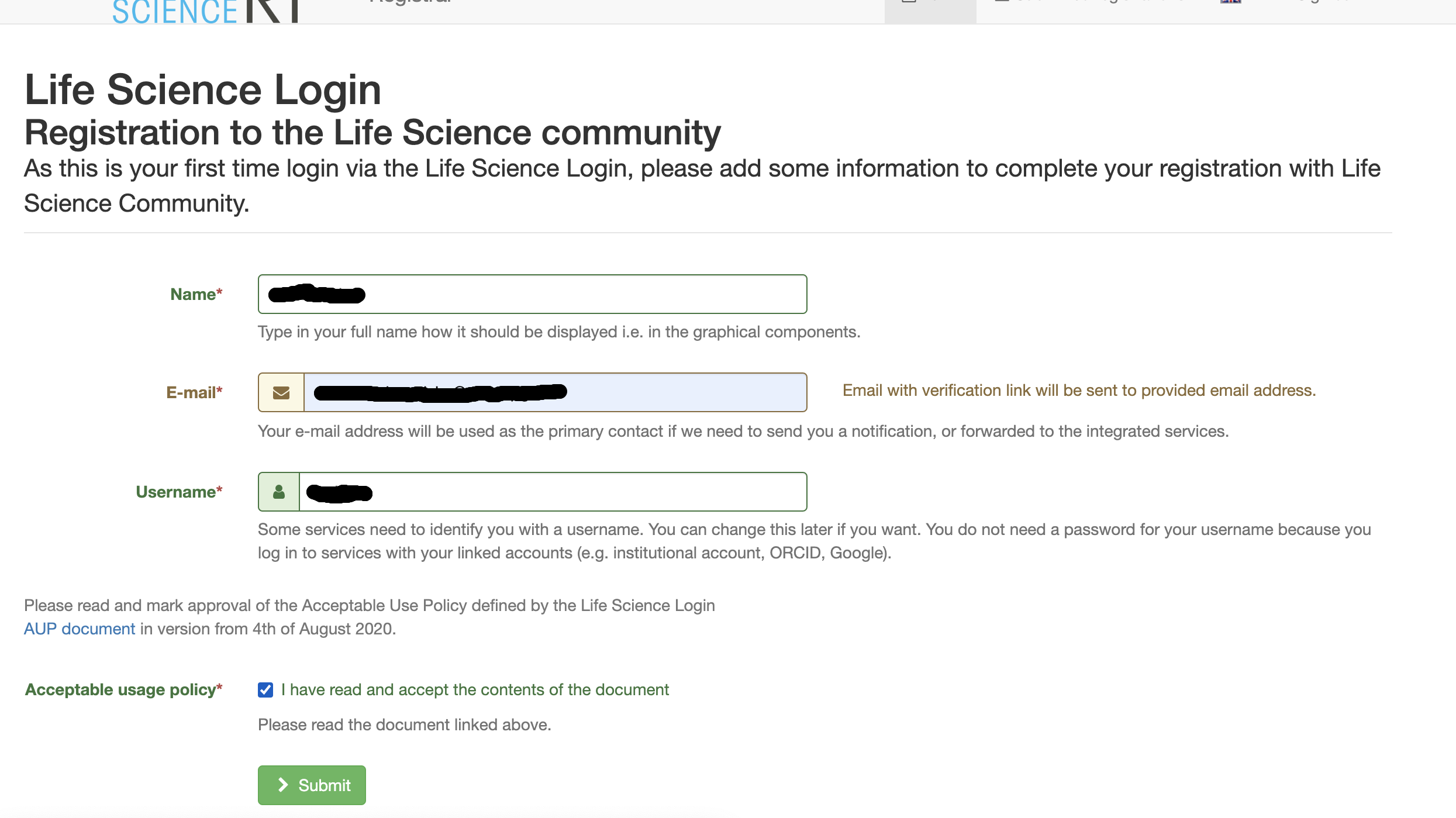 - Register for a LifeScience AAI Account and join the Virtual Organizations (VOs): LifeScience, Elixir, and deNBI in a single step: