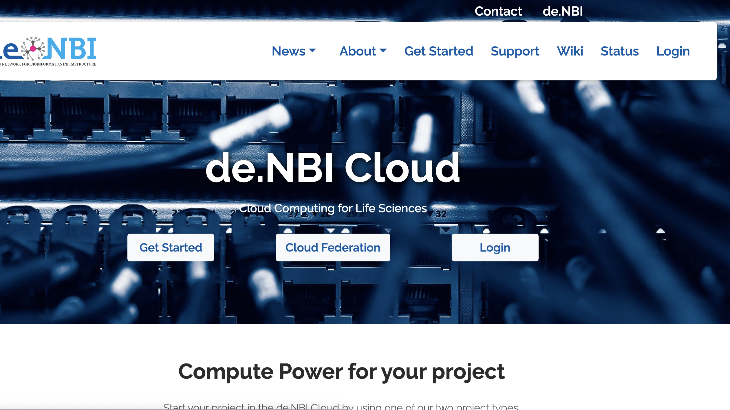 - Navigate to https://cloud.denbi.de, click 'Login', and select your login provider.