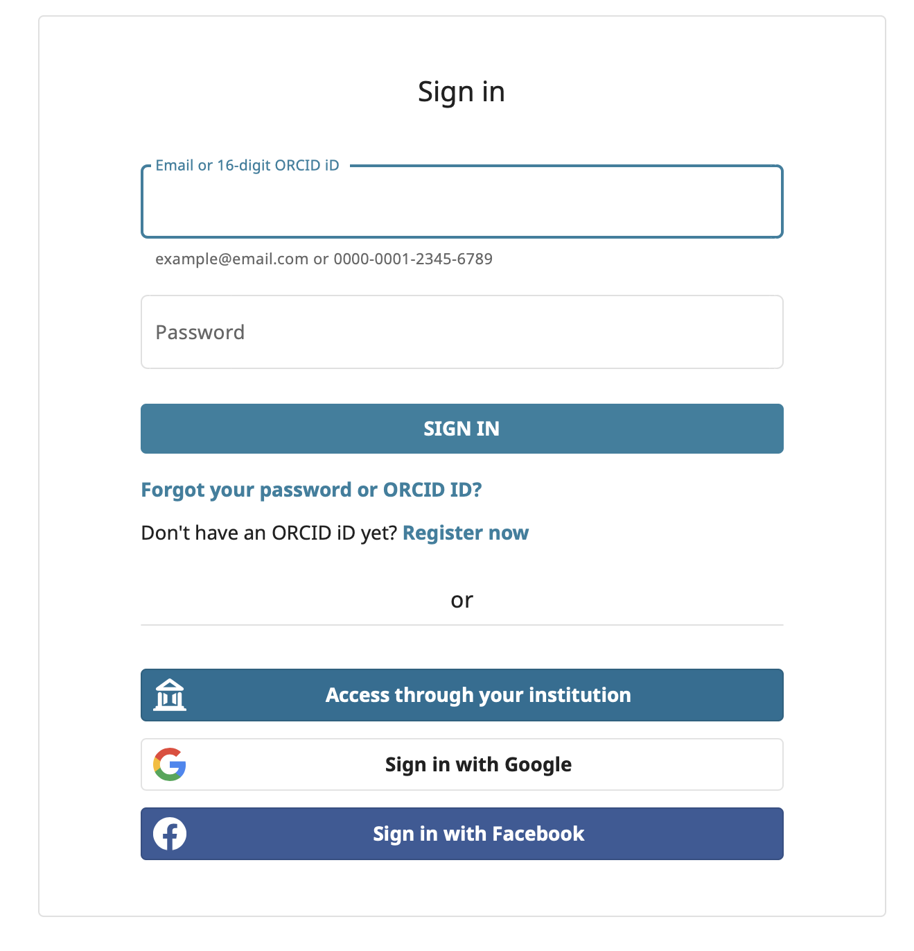 Choose an identity provider: Google, LinkedIn, ORCID.
